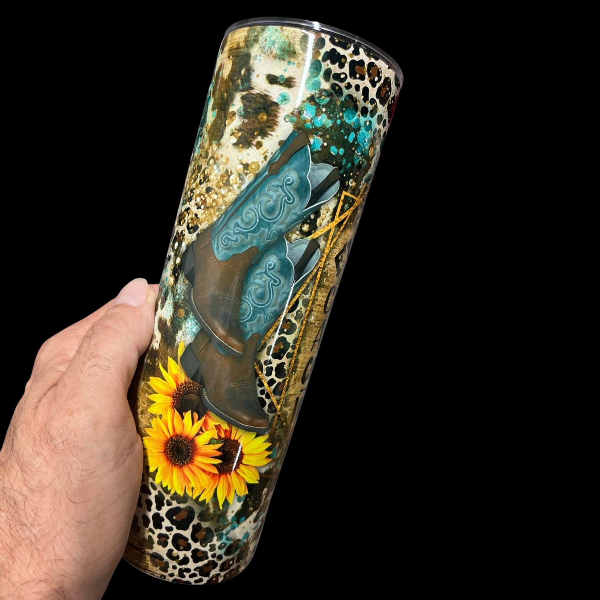 Fueled by Coffee and Country Music, Country Girl Tumbler, Western, Cowgirl tumbler, Country Girl Gift, Leopard print, 20 oz Skinny Tumbler
