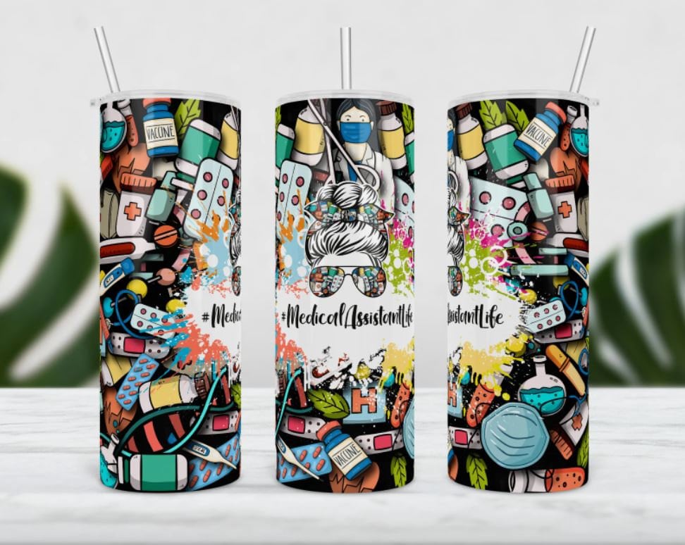 Medical Assistant, Messy Bun, 20 oz. Stainless Steel Tumbler